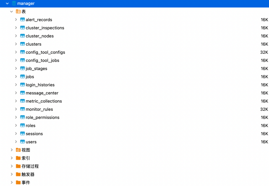 由于本次是用Mysql作为Manager元数据库,当服务正常启动后、对应的DB下也会自动初始化相关表。