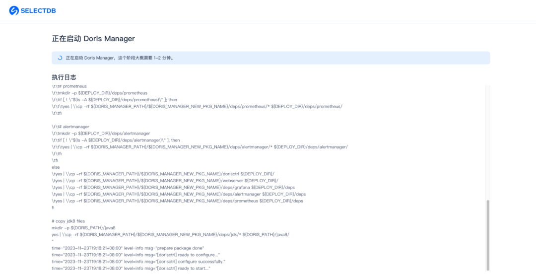 点击【启动Doris Manager】后 ,提示正在启动 Doris Manager。