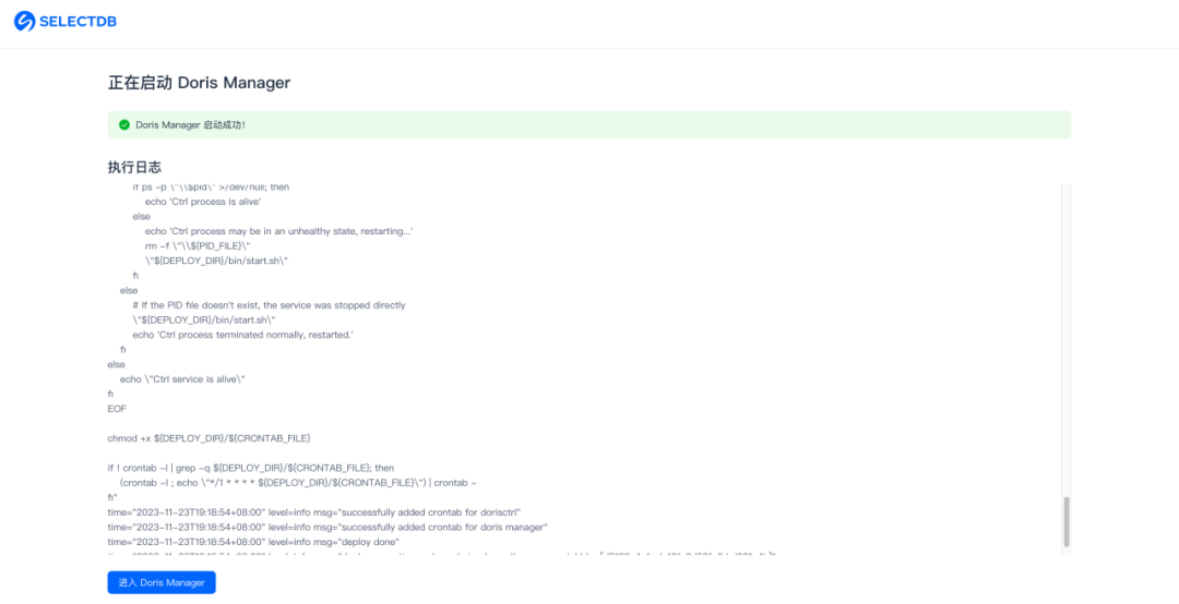 启动成功后,提示用户进入 Doris Manager,即Managerbu部署完成 :