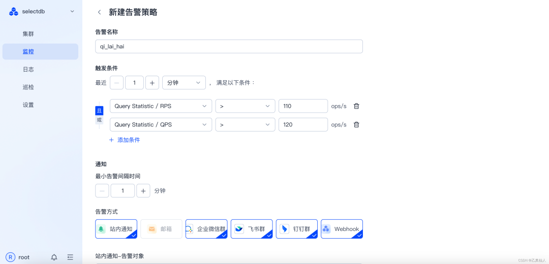 Manager 告警模块支持邮箱、企业微信、飞书和钉钉群等方式发送告警通知,不会让你错过任何一条异常告警信息,非常贴心。