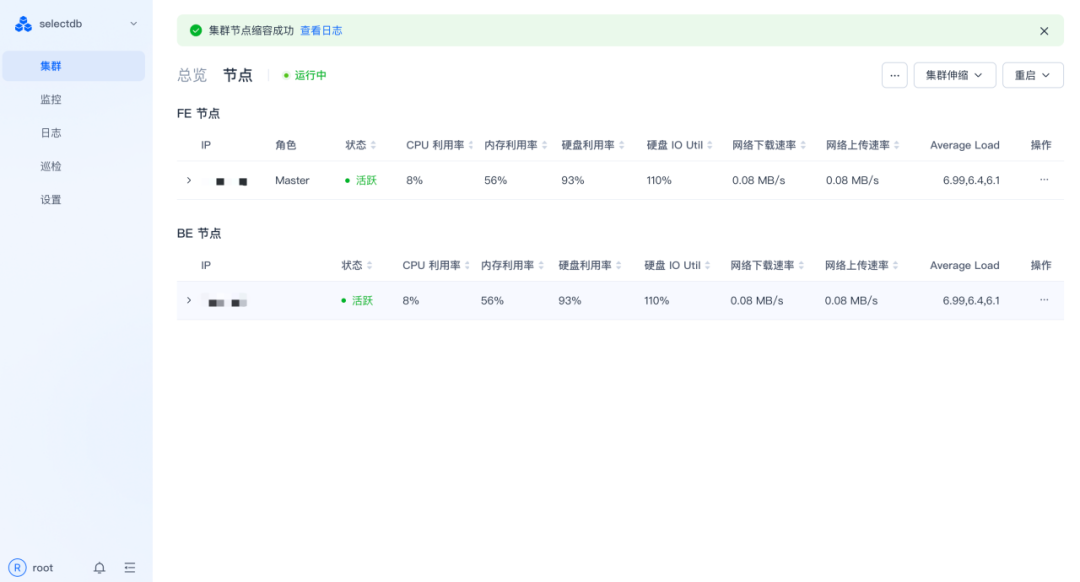 以刚刚扩容的BE为例,选择【BE缩容】。