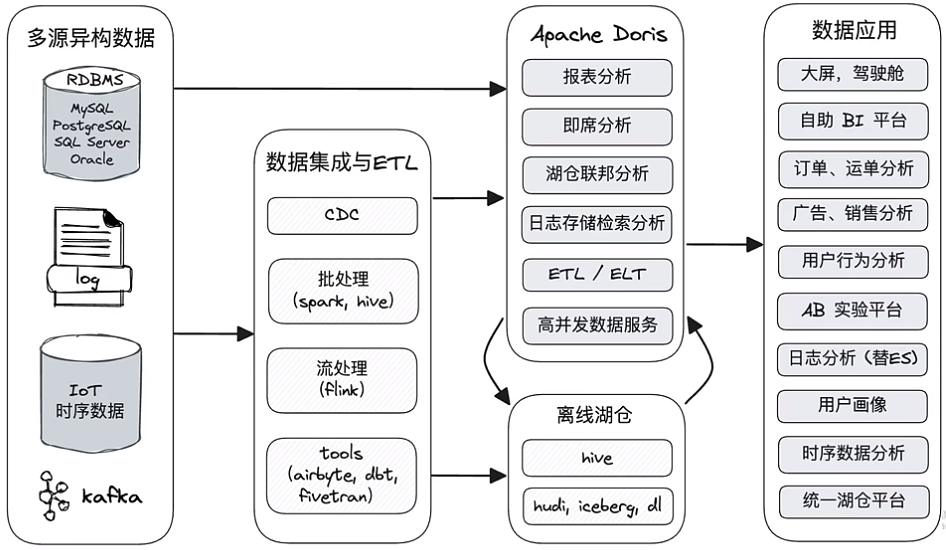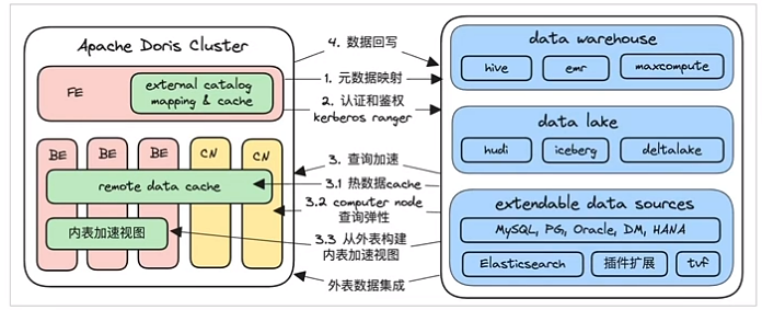 Doris主要定位在报表分析、即席分析、湖仓联邦分析、日志存储检索分析、高并发数据服务等场景,那Doris如何能够干这么多的事情呢?我们接着看。