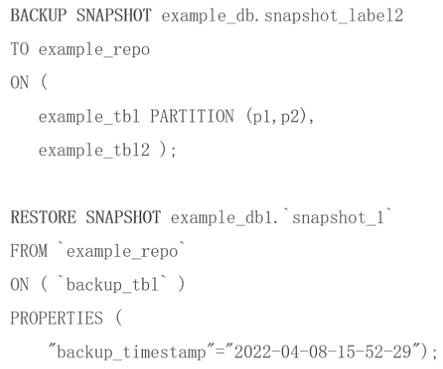 支持全表或者分区级别的数据备份恢复(数据备份到HDFS或者对象存储)