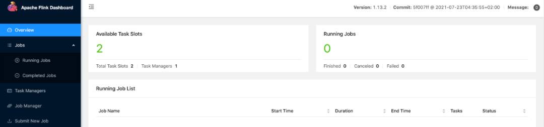 启动成功的话,可以在 http://localhost:8081/访问到 Flink Web UI,如下所示:
