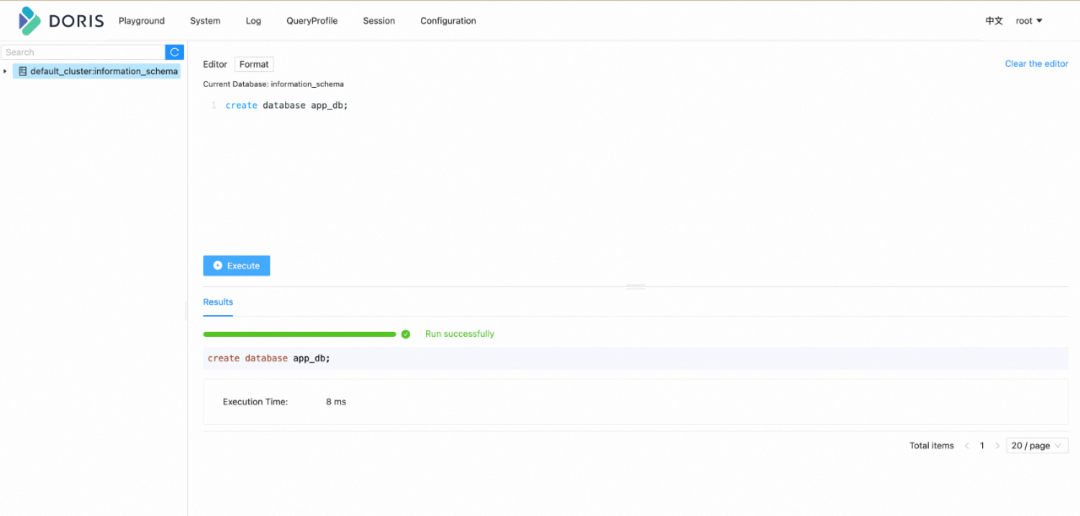 打开 Doris 的 Web UI,可以看到数据表已经被创建出来,数据能成功写入。
