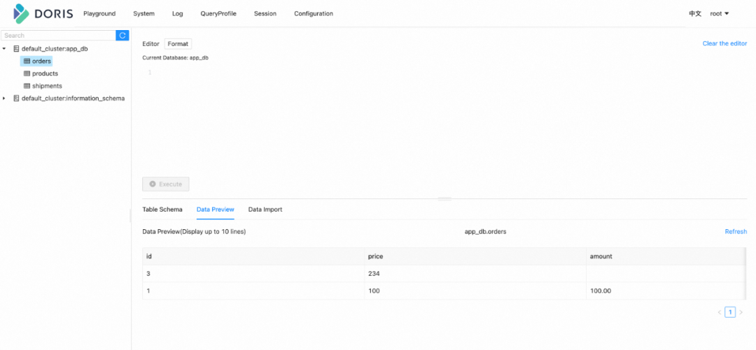 每执行一步就刷新一次 Doris Web UI,可以看到 Doris 中显示的 orders 数据将实时更新,如下所示: