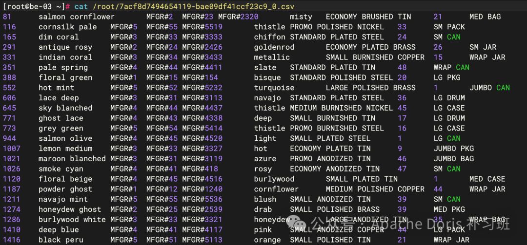 将大批量数据导出至远端存储系统中,如HDFS、支持S3协议的对象存储、本地文件系统等,这类导出会先将存储在 Doris 的压缩数据进行解压缩和列转行,然后再根据导出时候的参数定义转为指定的数据类型格式。