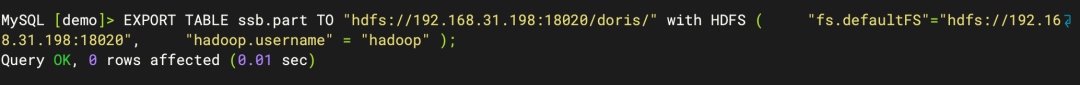 EXPORT TABLE ssb.port TO"s3://${BUCKET}/${S3_PATH}"