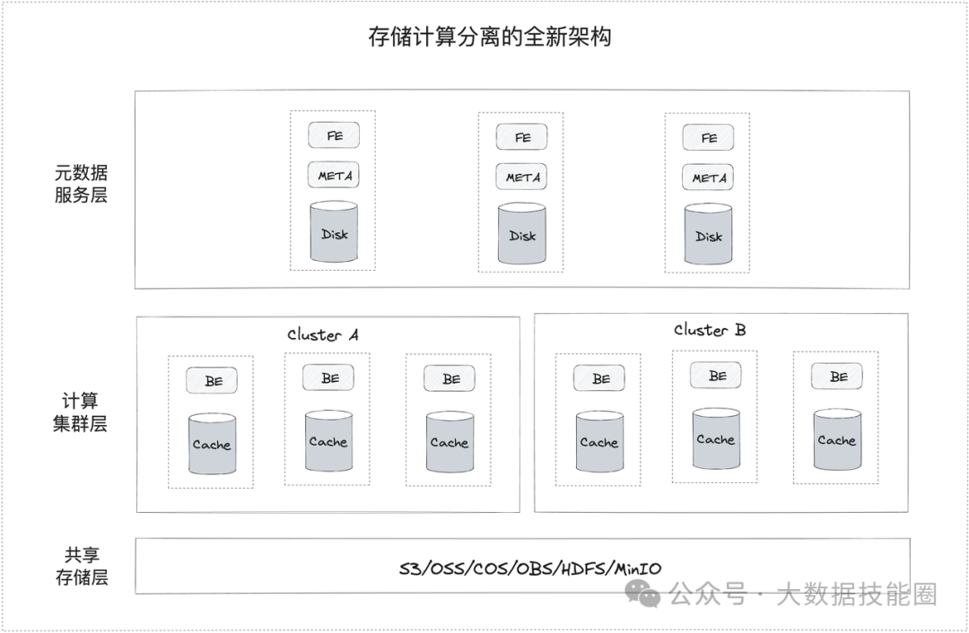 Doris即将推出存算分离架构,在存算分离架构下,计算节点不再存储主数据,而是将共享存储层作为统一的数据主存储空间