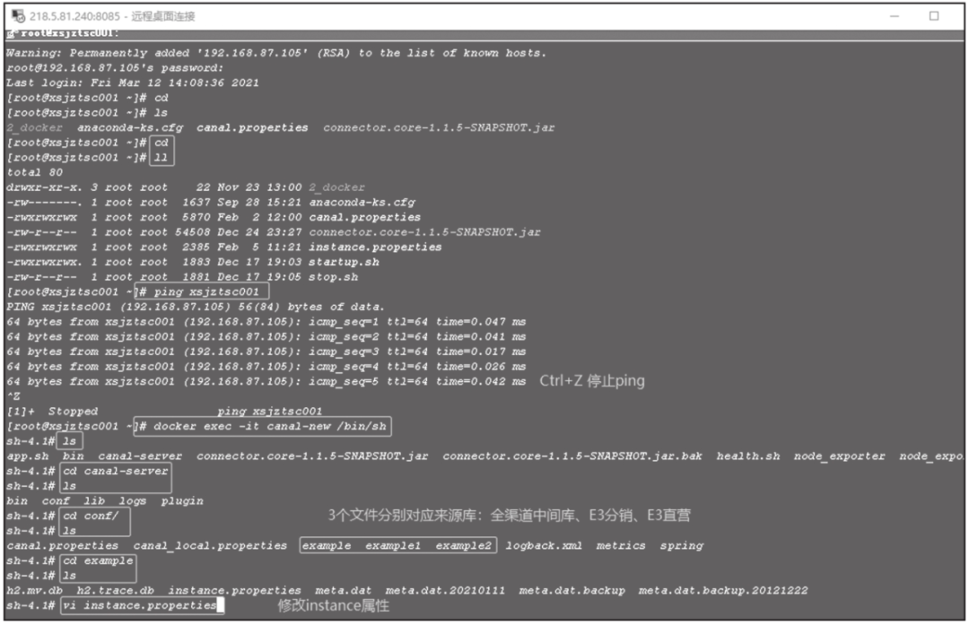 首先需要在Canal中配置Binlog日志拦截。Canal配置路径在/canal-server/conf下,进行Binlog日志拦截配置截图如图14-7所示。