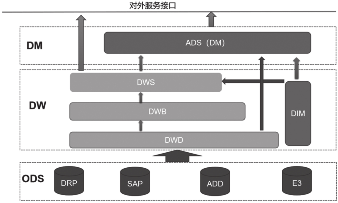 数据仓库层之外的ODS层、DM层和11.2节的仓库分层逻辑一致,这里不再赘述。