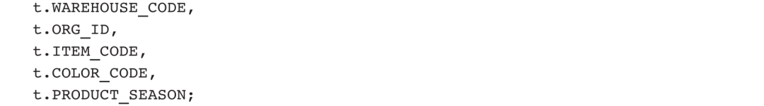 前后一致是指数据仓库层和数据集市层用到的相同含义的字段名应该保持一致,例如商品编码统一用skc_code,店铺代码统一用shop_code。