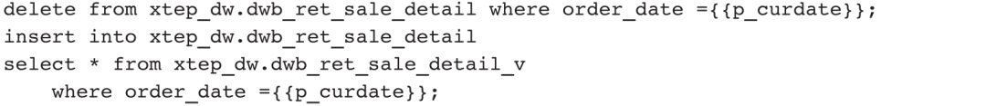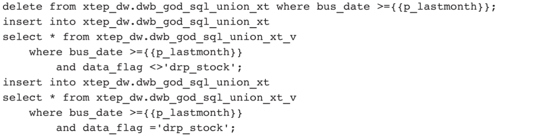针对增量数据加工任务,我们也可以采用先删除后插入的方式,继续复用视图逻辑。针对上述任务,每次只更新最近2个自然月的数据,SQL语句内容如下: