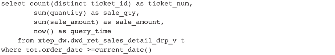 以“双十一”大屏的关键指标为例,其查询语句如下: