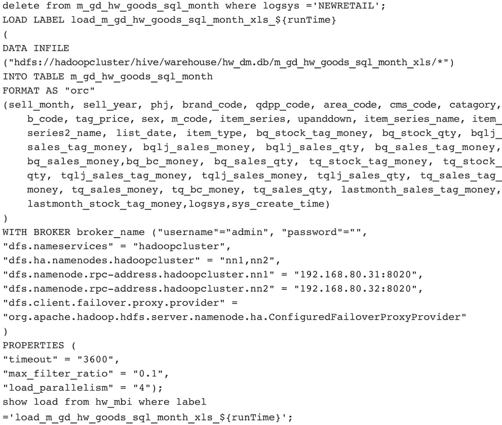 当然,Broker Load也有不方便的地方,因为数据加载是异步的,需要不断轮询才能确保数据加载完成。读者可以参考5.3节Broker Load的内容,通过Python代码实现数据轮询。如果有新的应用场景,建议采用DataX抽取数据的方式进行数据同步。