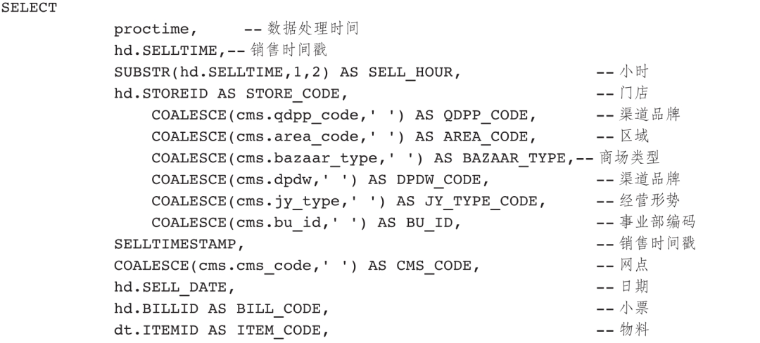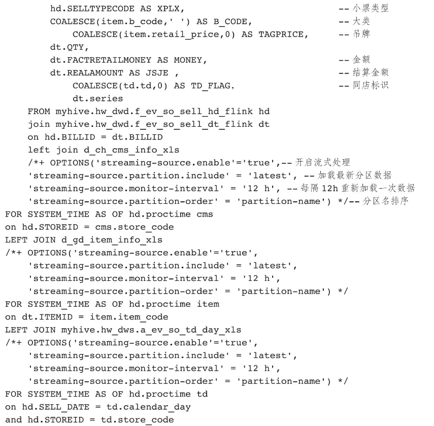 Flink实时计算逻辑采用Flink SQL实现,关键代码如下:
