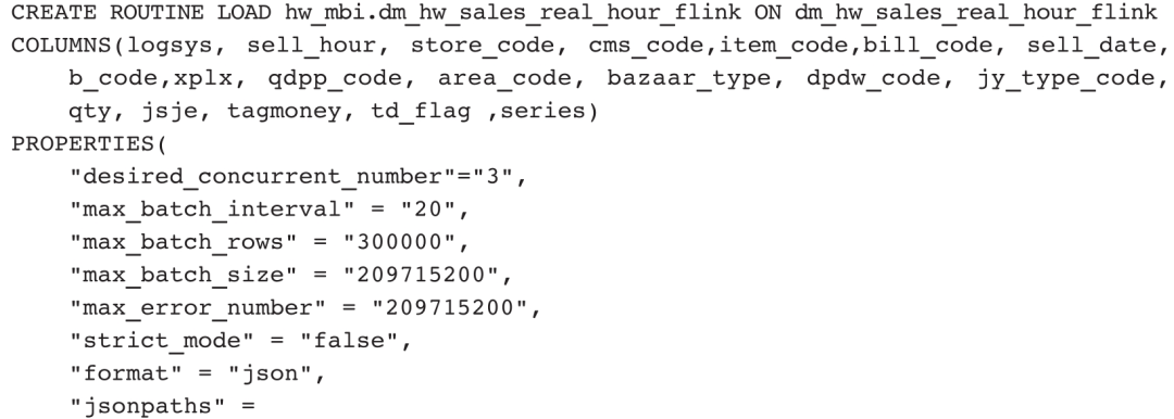 早期的Doris不支持Flink直接写入数据,需要通过KafKa中转,因此在Flink加工数据之后,还需要在Doris中创建ROUTINE LOAD任务来实时消费KafKa中的数据并写入Doris内部表。