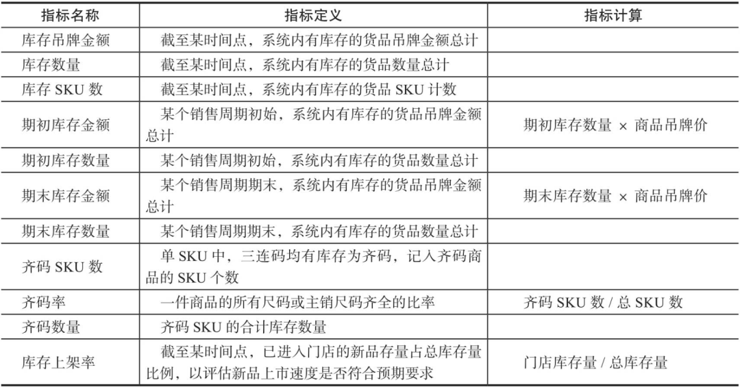 表13-4 基于库存和齐码率的衍生指标定义及其计算逻辑