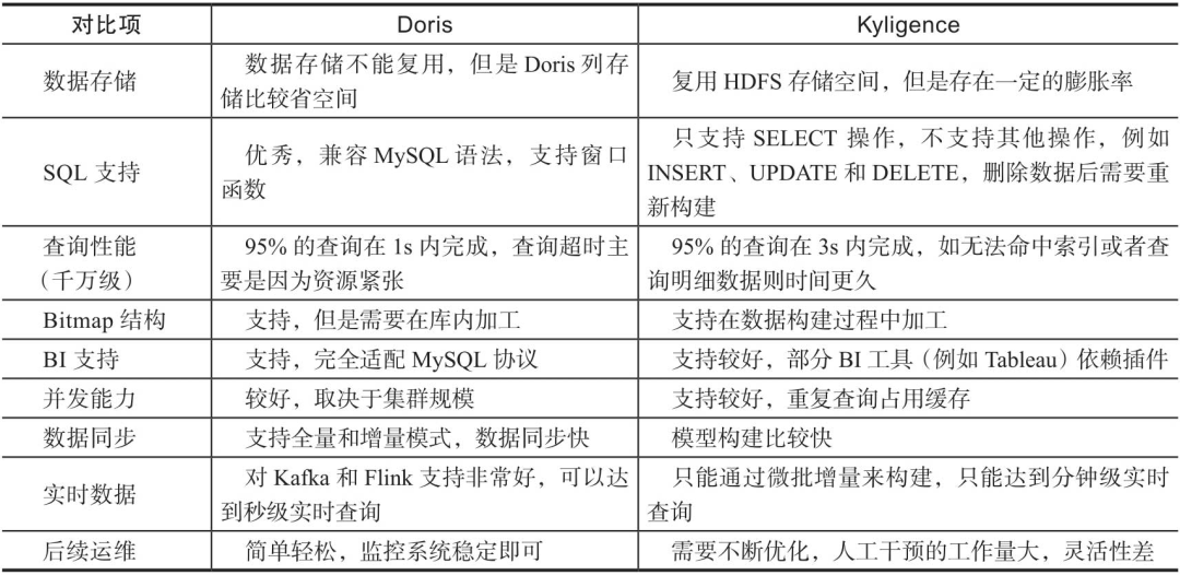 表13-7 Doris和Kyligence对比