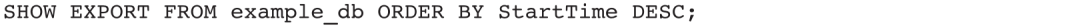 在提交导出任务以后,我们可以通过SHOW命令查看执行中的导出任务,并按StartTime降序排序。