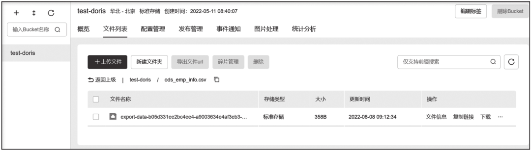 导出完成以后,我们登录BOS控制台,可以看到导出文件是一个文件夹,截图如图10-2所示。