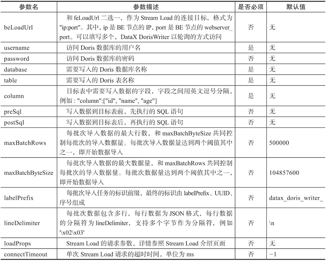 DataX DorisWriter配置参数及其解释如表5-3所示。