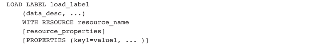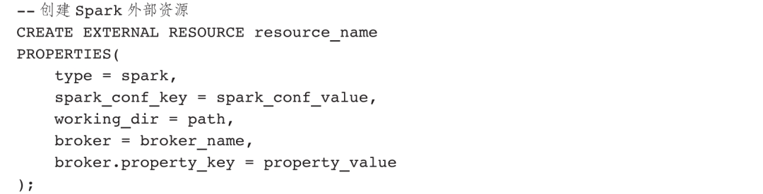 提交Spark Load任务之前,用户需要配置执行ETL任务的Spark外部资源,语法如下: