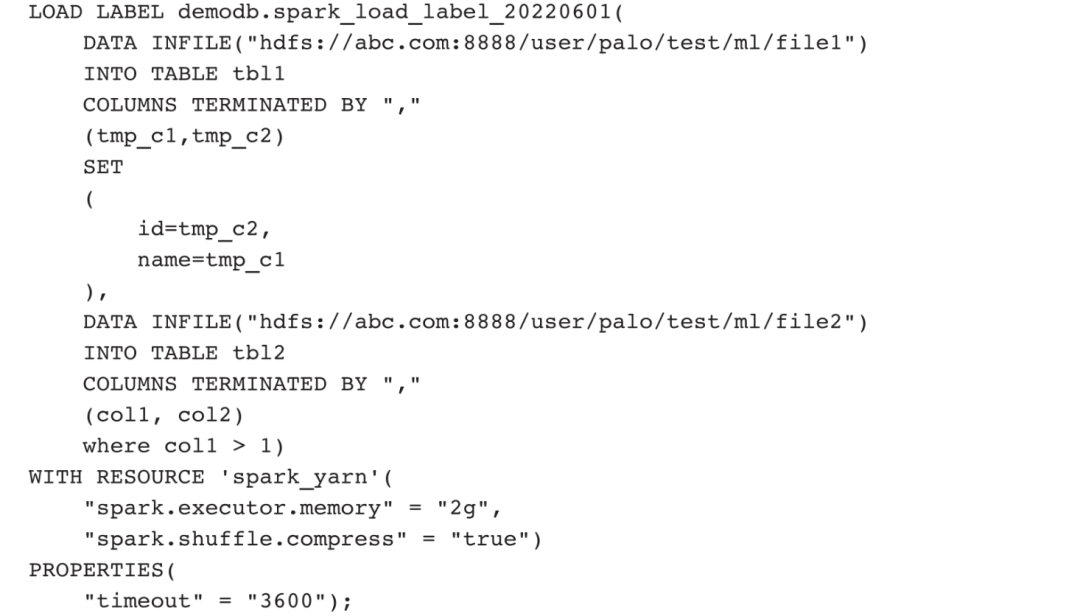 WITH LABEL还可以为本次导入操作指定一个Label,如果不指定,系统会自动生成一个Label。