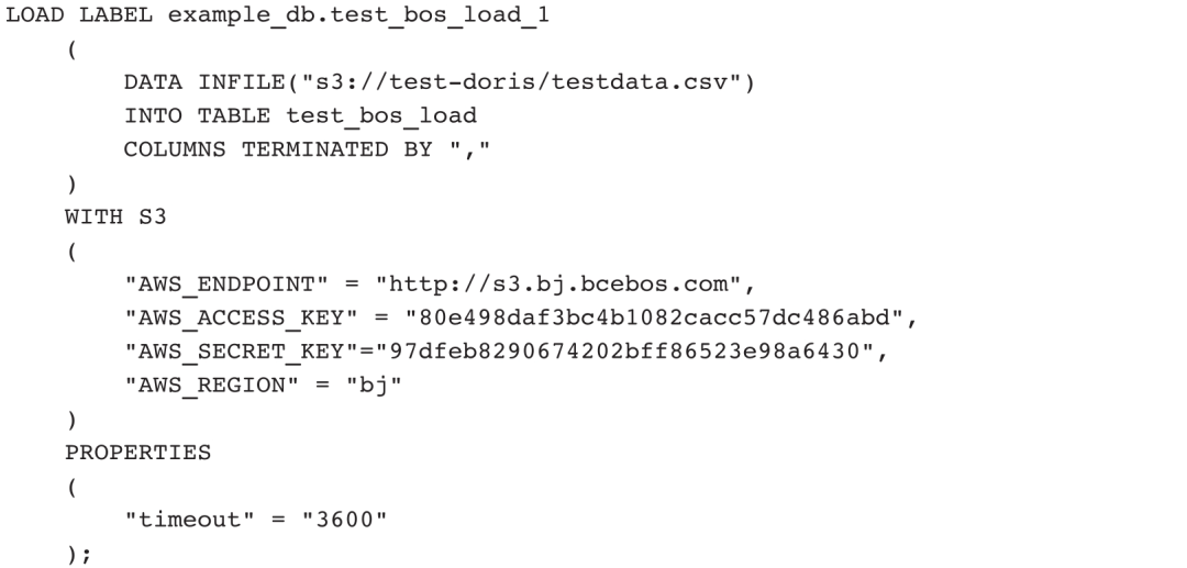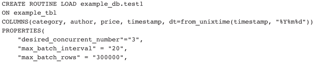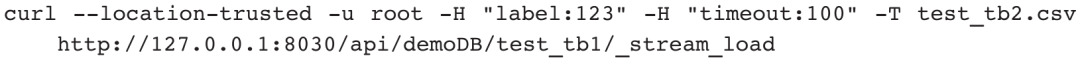 ❑timeout:用于指定数据导入的超时时间,单位为秒,默认是600 s,可设置超时范围为1~259200 s。