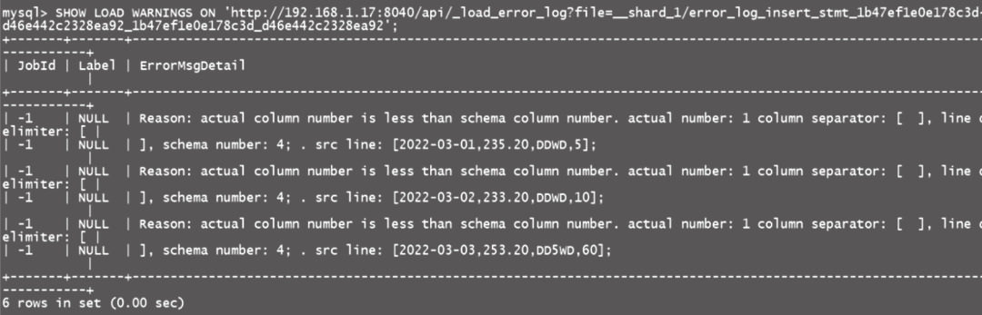 我们也可以通过SHOW语句查看Stream Load失败的详细信息: