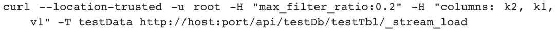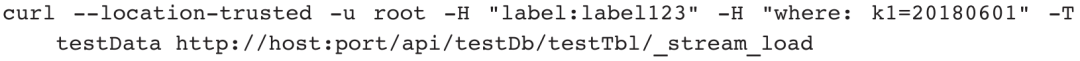 ❑where:用于抽取部分数据。用户如果想将不需要的数据过滤掉,可以设定该选项来达到目的。例如只导入k1列等于20180601的数据,那么可以在导入数据时指定-H"where:k1=20180601"。