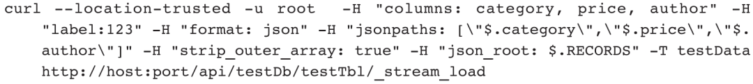 ❑format:用于指定导入数据格式,默认是CSV,支持JSON格式。