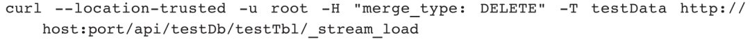 ❑merge_type:用于指定数据的合并类型,支持3种类型,APPEND、DELETE、MERGE。APPEND是默认类型,表示导入数据全部和现有数据合并;DELETE表示删除与导入数据中Key字段相同的所有行;MERGE类型需要与DELETE条件联合使用,表示满足DELETE条件的数据按照DELETE语义处理,其余的数据按照APPEND语义处理,示例-H"merge_type:MERGE"-H"delete:flag=1"。