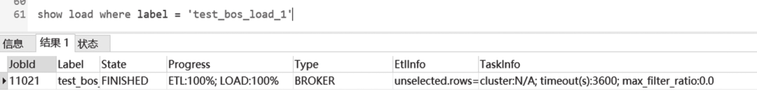 执行成功会返回导入记录数、被过滤记录数、导入LABEL、数据提交状态、事务ID等。执行失败会显示失败的原因和失败数据的URL链接。(不是每次错误的URL链接都呈现。