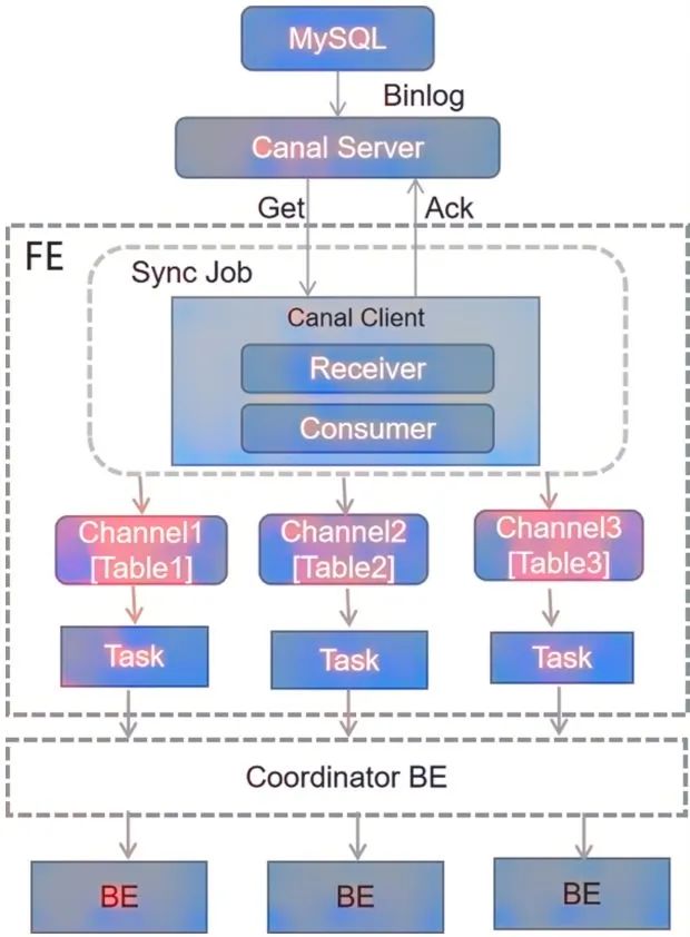 8)Coordinator BE接收到导入计划之后,开始执行导入计划,其中包括接收传来的实时数据以及将实时数据通过BRPC分发到其他Executor BE。