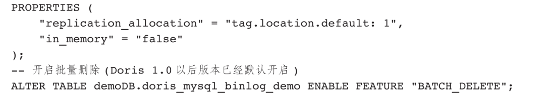用户需要先在Doris端创建好与MySQL端对应的目标表。Binlog Load只支持Unique模型的目标表,且必须激活目标表的Batch Delete功能。