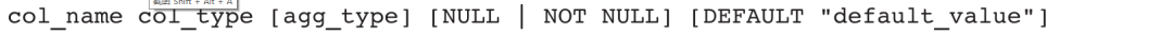 列定义即确定表的每一列对应的属性,包括列名、列类型、可选的聚合类型、是否为空和默认值。列定义的语法如下: