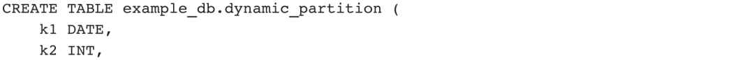 示例2:创建一个动态分区表(需要在FE配置中开启动态分区功能),该表每天提前创建3天的分区,并删除3天前的分区。例如今天为2020-01-08,则创建名为p20200108、p20200109、p20200110、p20200111的分区。