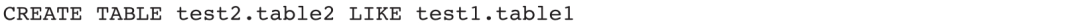 示例1:在test2库下创建一张表结构和test1.table1相同的空表,表名为table2。