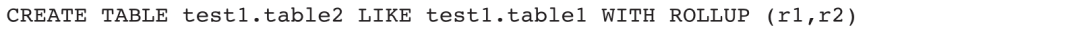 示例2:在test1库下创建一张表结构和table1相同的空表,表名为table2,同时复制table1的r1、r2两个ROLLUP对象。