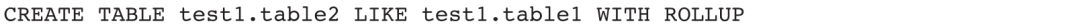 示例3:在test1库下创建一张表结构和table1相同的空表,表名为table2,同时复制table1的所有ROLLUP对象。