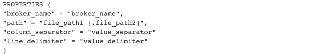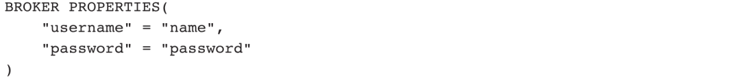 另外,还需要提供Broker访问需要的Property信息,这可以通过BROKER PROPERTIES传入,例如访问HDFS时需要传入: