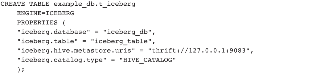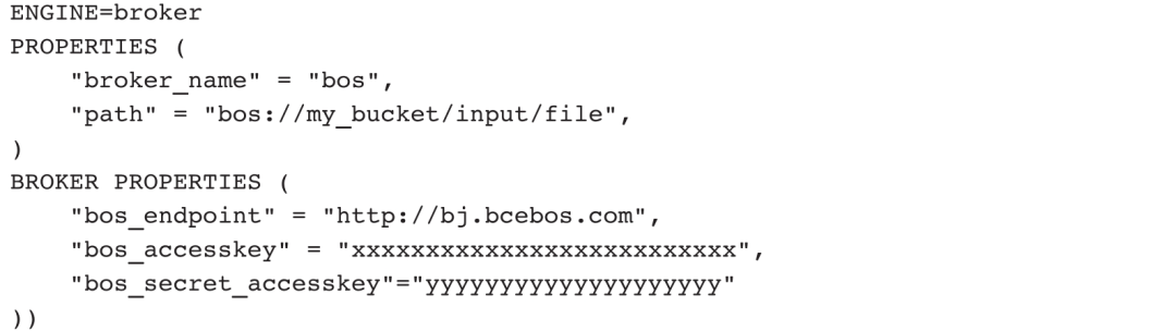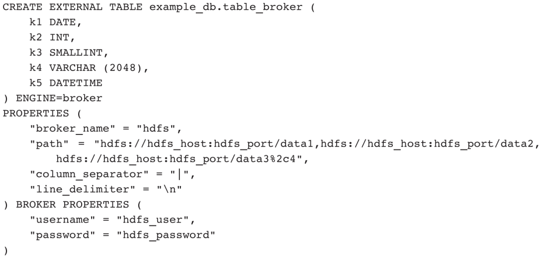 目前,Doris支持4种外部表引擎来读取外部表数据,分别是MySQL、Broker、Hive、Iceberg,它们都是通过表定义的PROPERTIES来补充链接信息的,其中Broker表引擎还用到了BROKER PROPERTIES属性。