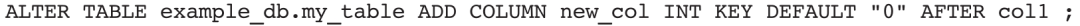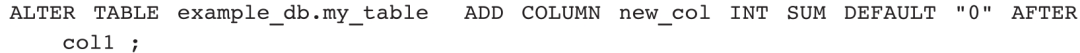 其中,agg_type仅用于Aggregate模型,且仅支持SUM、MAX、MIN、REPLACE、BITMAP_UNION、HLL_UNION等聚合类型。agg_type是可选项,如果不指定,说明该列是维度列(Key列),否则是事实列(Value列)。在建表语句中,所有的Key列必须在Value列之前,一张表可以没有Value列(这样的表叫作维度表),但不能没有Key列。