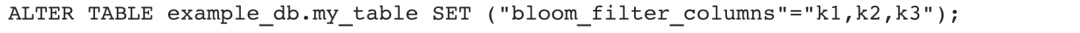 3)目前,Bloom Filter索引只支持除了TINYINT、FLOAT、DOUBLE类型以外的Key列及聚合类型为REPLACE的Value列。