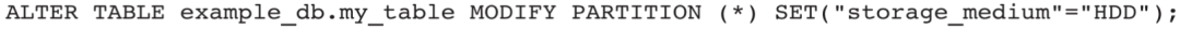 2)当表为单分区表时,以上键值对为表的属性。当表为两级分区时,这些属性附属于每一个分区。如果希望不同分区有不同的属性,我们可以通过ADD PARTITION或MODIFY PARTITION进行指定。