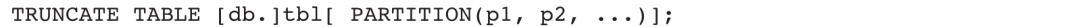 清空表语句用于清空表中数据,但保留表或分区,被删除的数据不可恢复。不同于DELETE语句,该语句只能清空指定的表或分区中数据,不能添加过滤条件,同时不会对查询性能造成影响。使用该命令时,表状态需为NORMAL,即不允许执行Schema变更等操作。