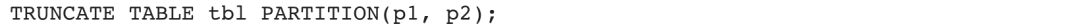 2)清空表tbl的p1和p2分区:
