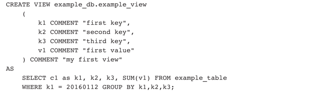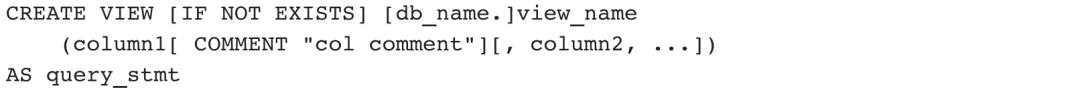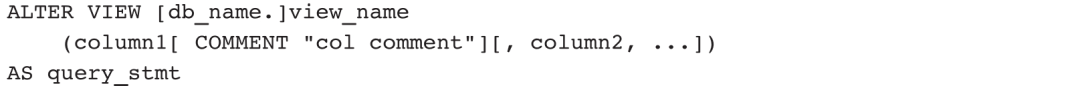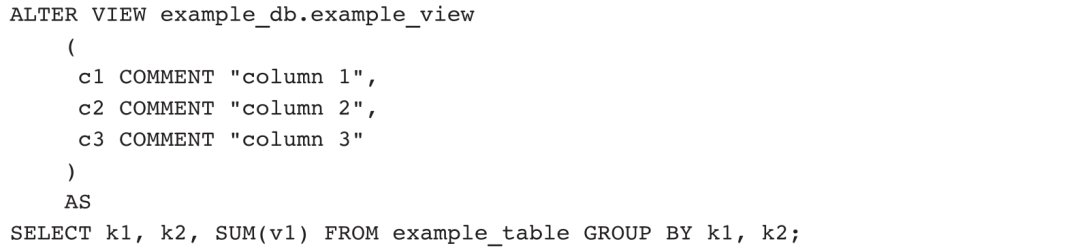 视图只有结构定义,没有数据存储,因此只存储在FE节点的元数据中。在使用视图时,Doris会执行视图定义中的查询语句并返回结果,因此,修改视图等价于修改视图的查询语句,基本语法如下: