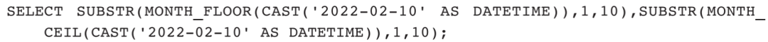 1)获取2022年2月10日对应的月初第一天和下月的第一天: